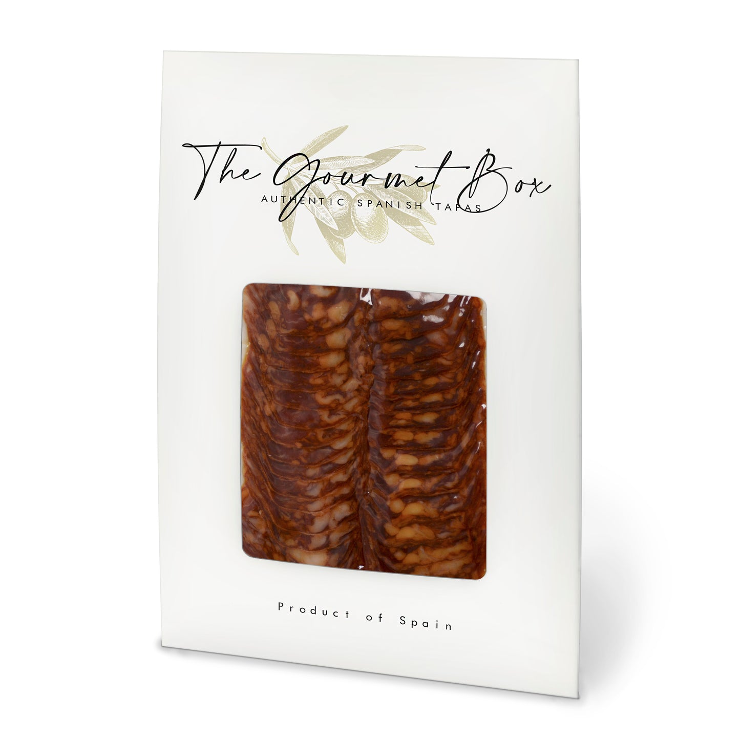 Chorizo Ibérico de Bellota en prácticas bandejas de 80g al vacío y en estuche Premium.