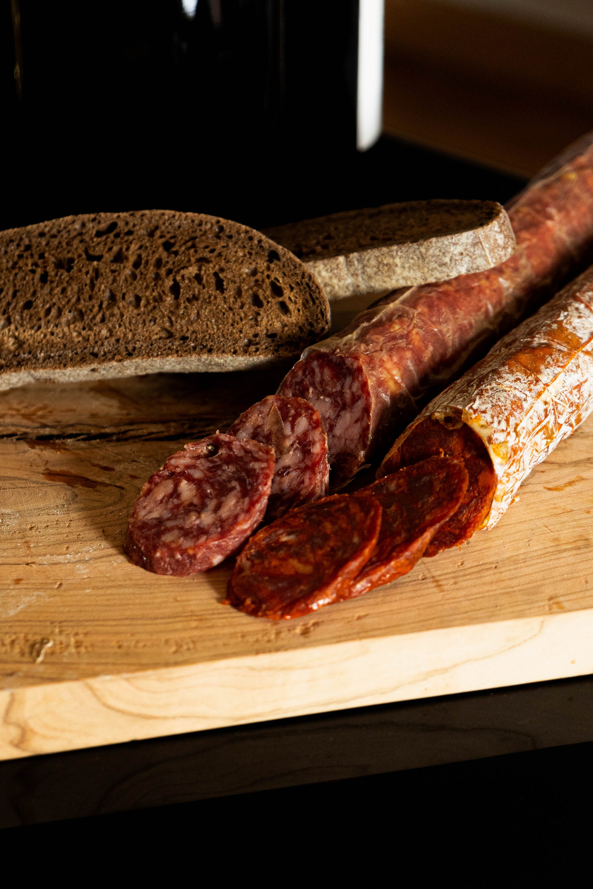 Parecido al clásico fuet, con el punto justo de pimienta y una calidad cárnica excepcional, con poco porcentaje de grasa. La curación y maduración muy lenta consigue un aroma y gusto excepcional.